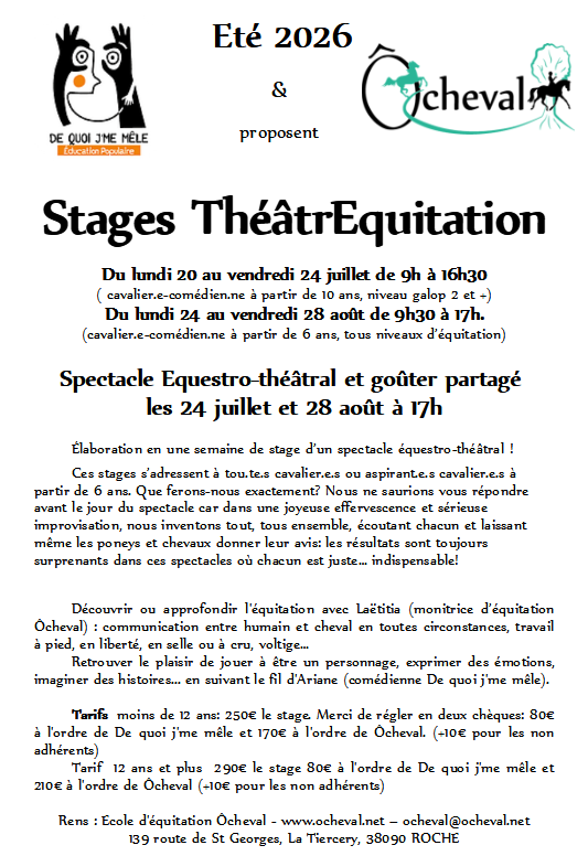 Nous avons à cœur de proposer des activités qualitatives, collectives saines et en sécurité. au vu de la fluctuation des inscriptions, nous adaptons ainsi nos pratiques mais si Ôcheval vous plaît, n’hésitez pas à venir en joyeuse compagnie parce que « Tout seul on va (peut-être) plus vite, mais ensemble, on va (tellement mieux et…) plus loin »